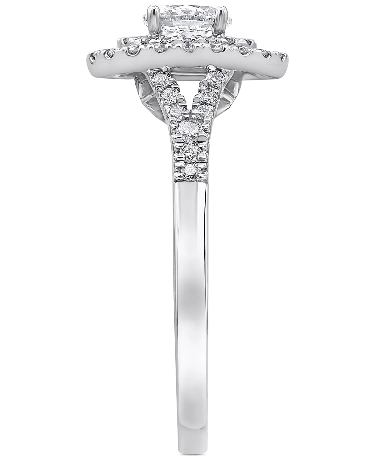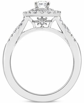 This gorgeous engagement ring is about grace and beauty with a stunning oval-cut diamond center (1/2 ct. t.w.) set on an 18k white gold band, sparkling with accent stones. The perfect finish is a shining diamond star, hidden under the gallery.