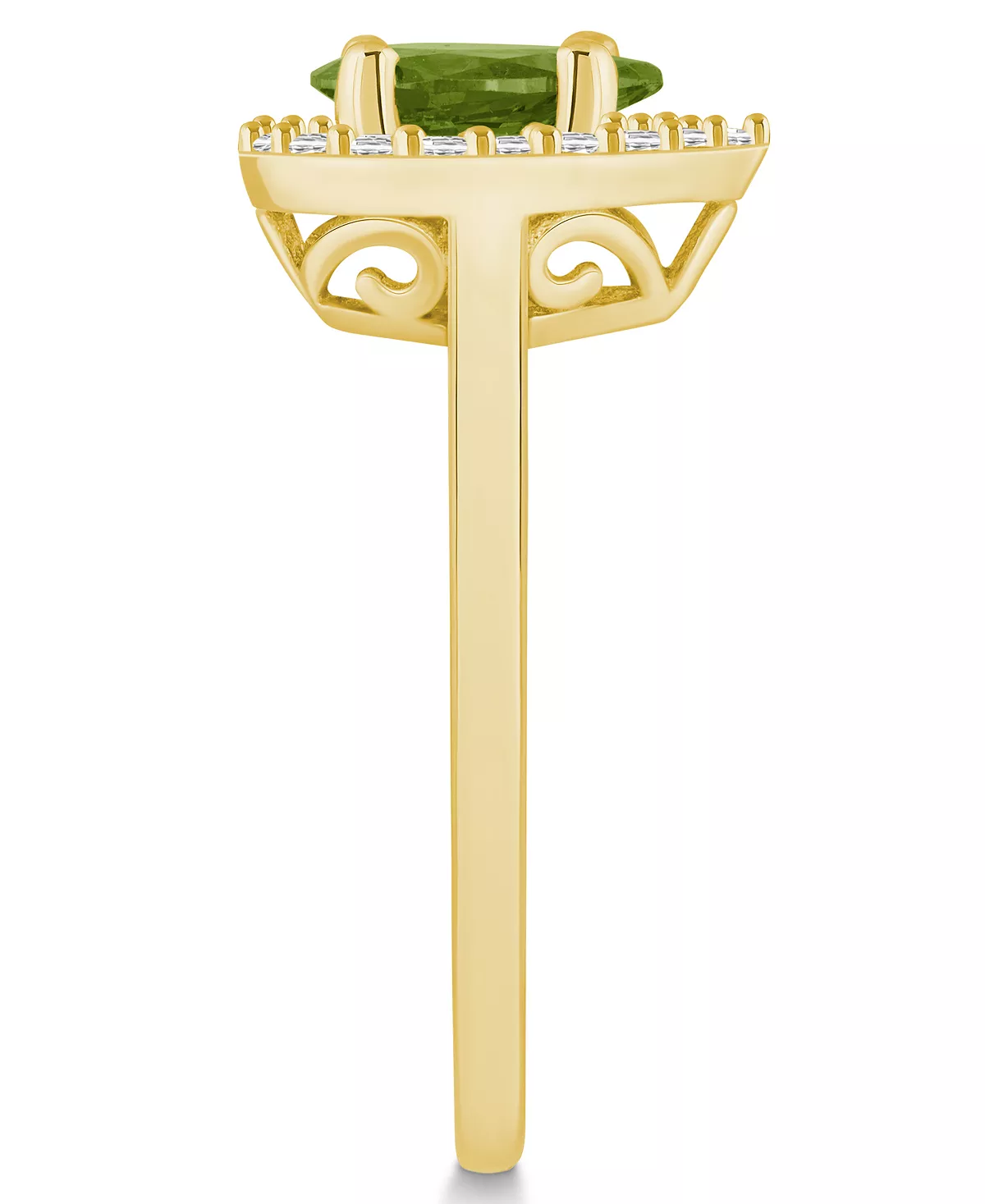 Shimmering diamonds encircle a stunning peridot in this fashionable ring.