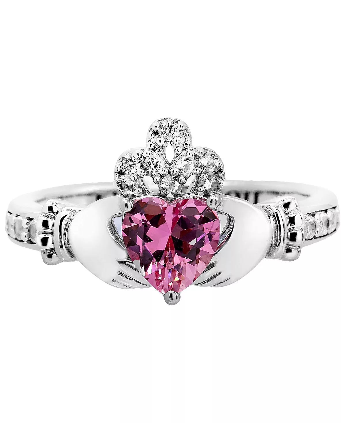 Make a promise of love with this “I love you” Claddagh message ring with Created pink and white sapphire.