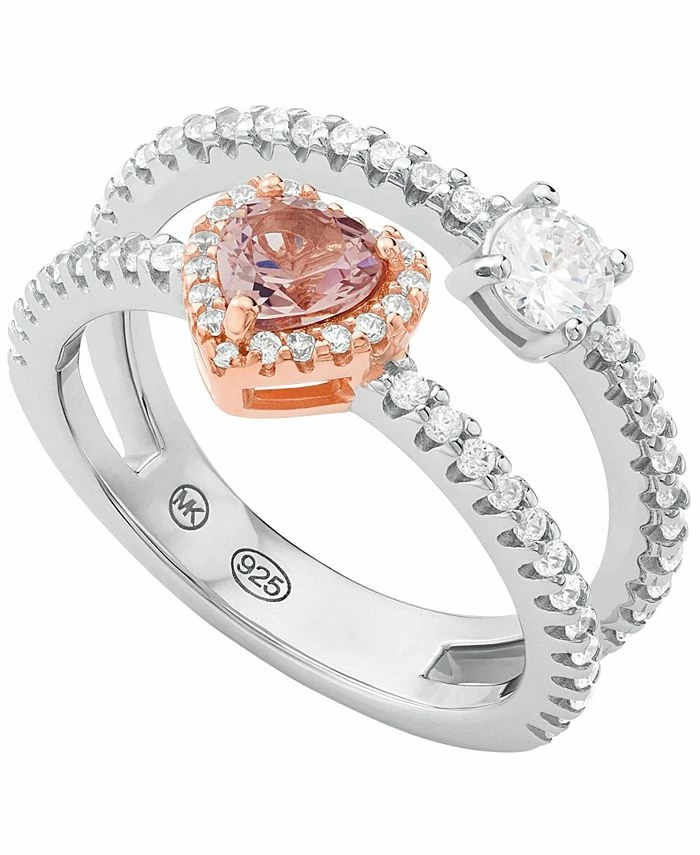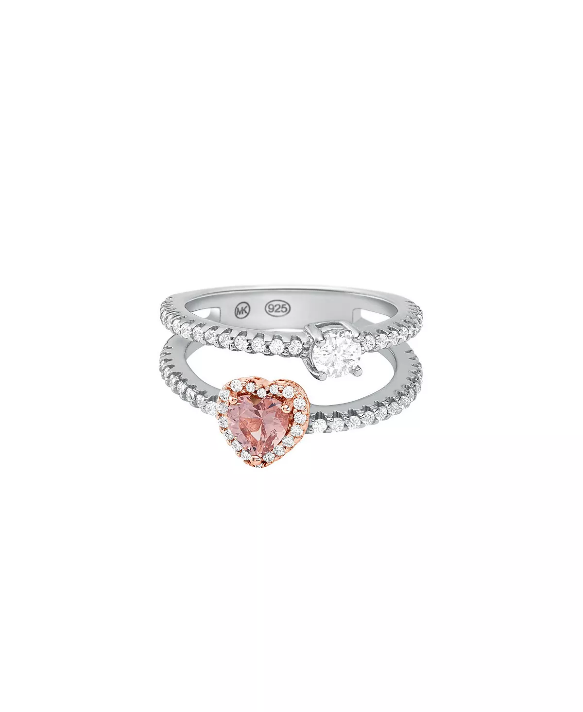 Kors love is a collection of modern designs detailed with messages of love. This new stacked ring is designed with two rows of clear crystals set in the band. This piece features a radiant focal stone and a stunning heart-cut morganite nanogem bordered by shimmering crystals.
