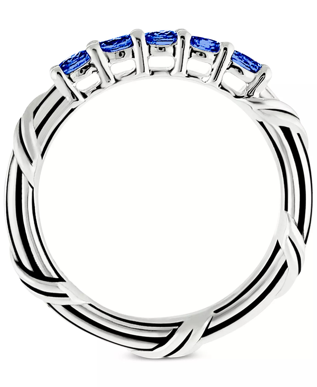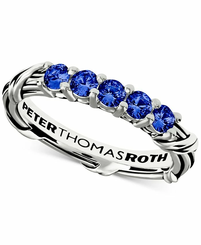 A striking quintet of round-shape blue sapphires cast a beautiful glow in this Peter Thomas Roth ring designed in sterling silver.