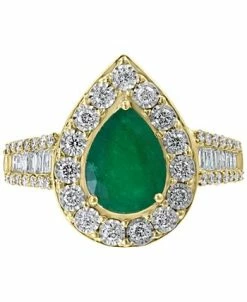EFFY Collection ® Emerald ( 1-1/8 Ct. T.w.) & Diamond (3/8 Ct. T.w.) Teardrop Ring In 14k Gold