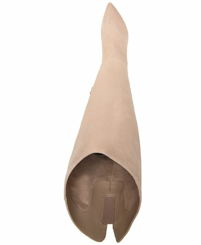 - Pointed-toe over-the-knee boots with partial side zipper closure