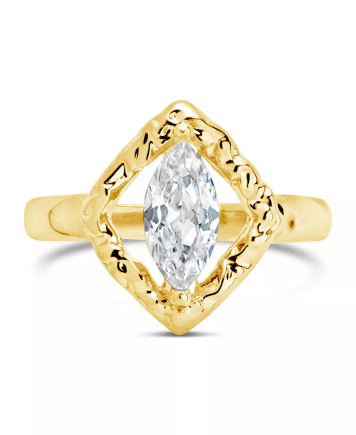 Add bold sparkle to your look thanks to this unique ring. The textured ring features an open center that contains a gleaming cubic zirconia stone.