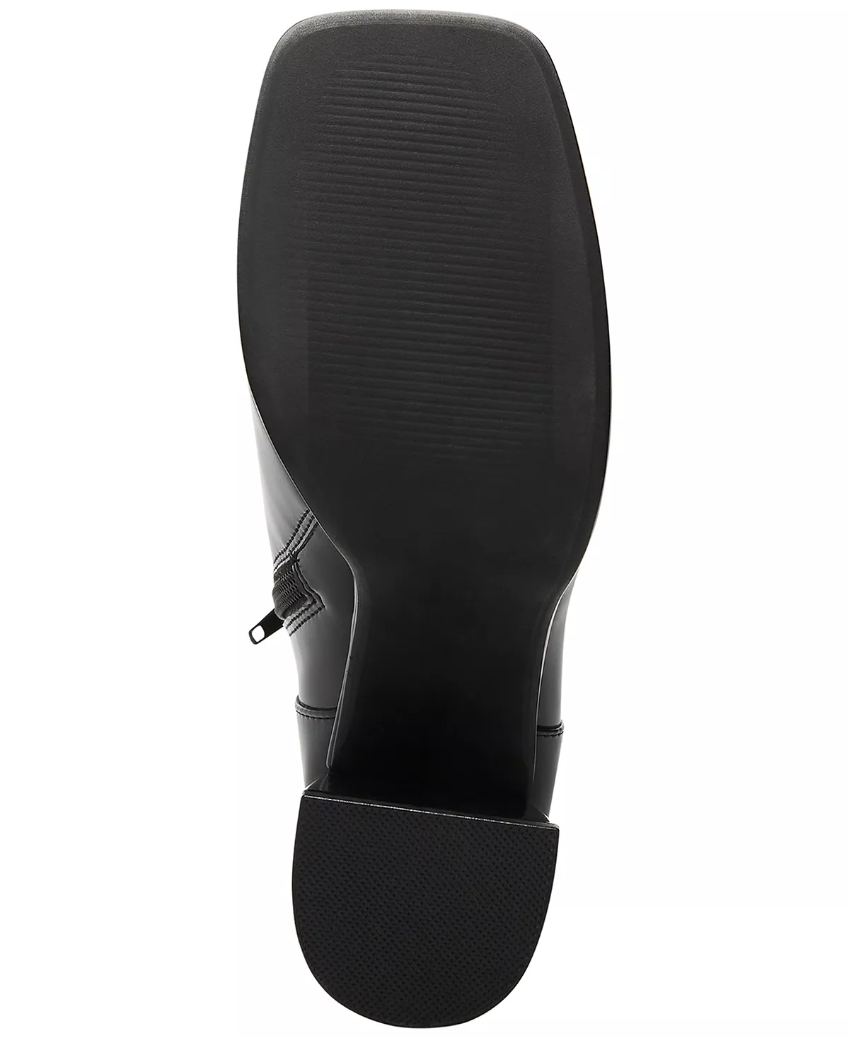Patent polish shines atop retro-inspired platforms in the striking Bianca booties from Steve Madden.
