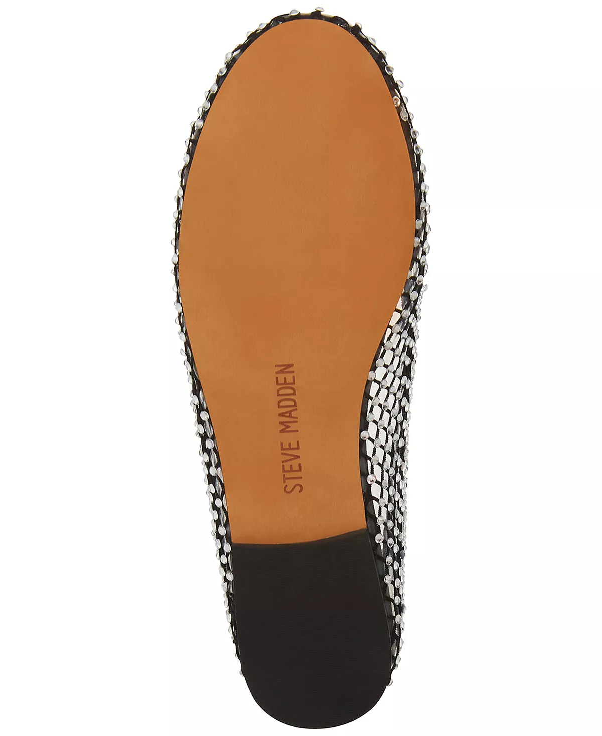 Peekaboo-chic pairs with sparkling rhinestones and tidy bows for a pretty accent to both dressed up and casual looks with the Steve Madden Blossoms flats.