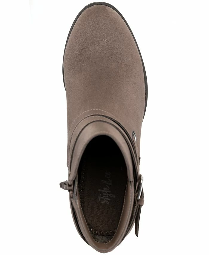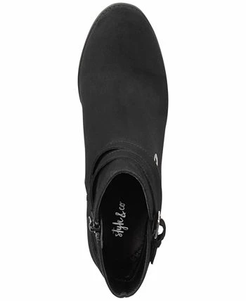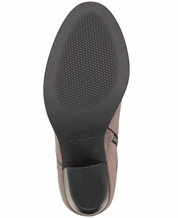 Accented by shiny hardware, wraps of straps wind around the cushioned design of Style & Co’s Zolaa booties with bold block heels.