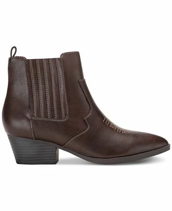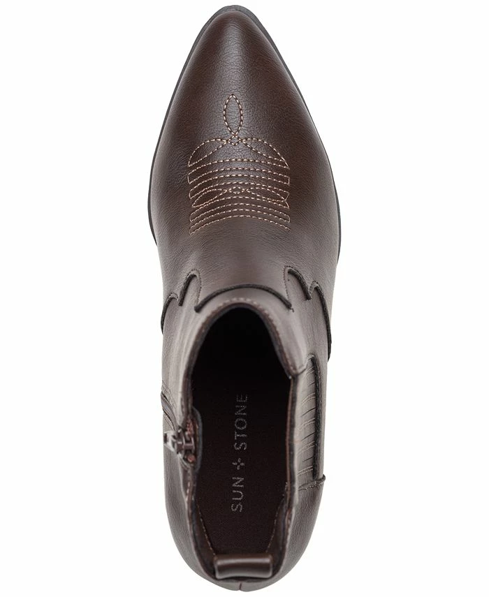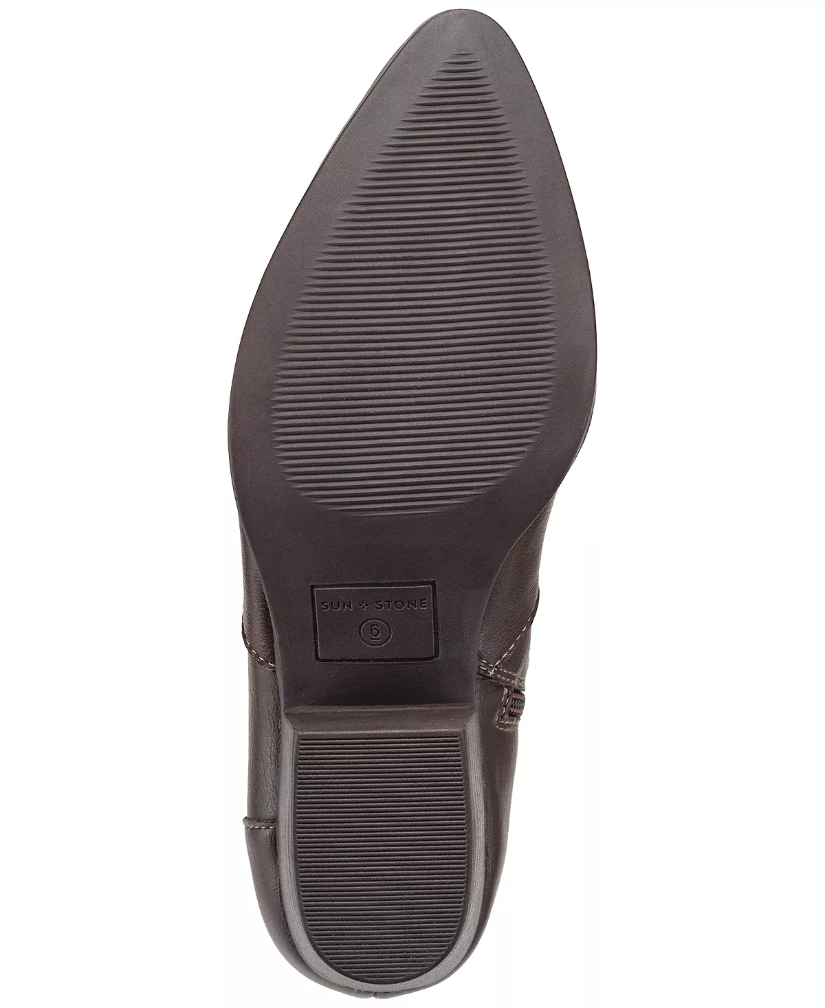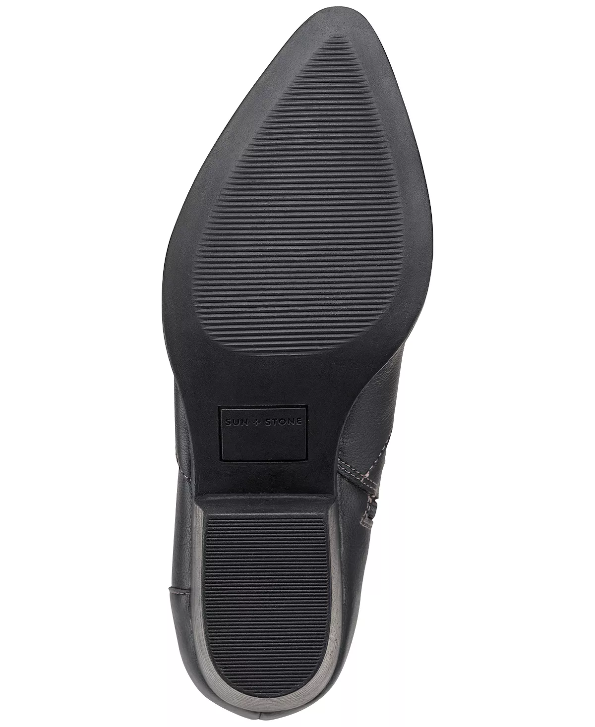 Western-inspired detailing pair with pointed toes and a sleek design in the go-to Grangerr booties from Sun + Stone.