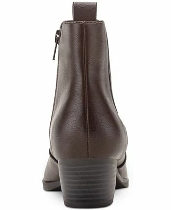 - Pointed-toe ankle booties with inner ankle zipper closure