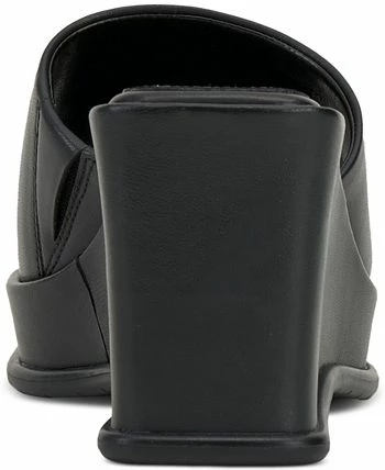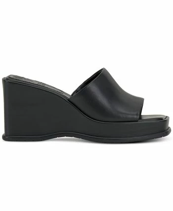 - Square-toe slip-on platform wedge sandals