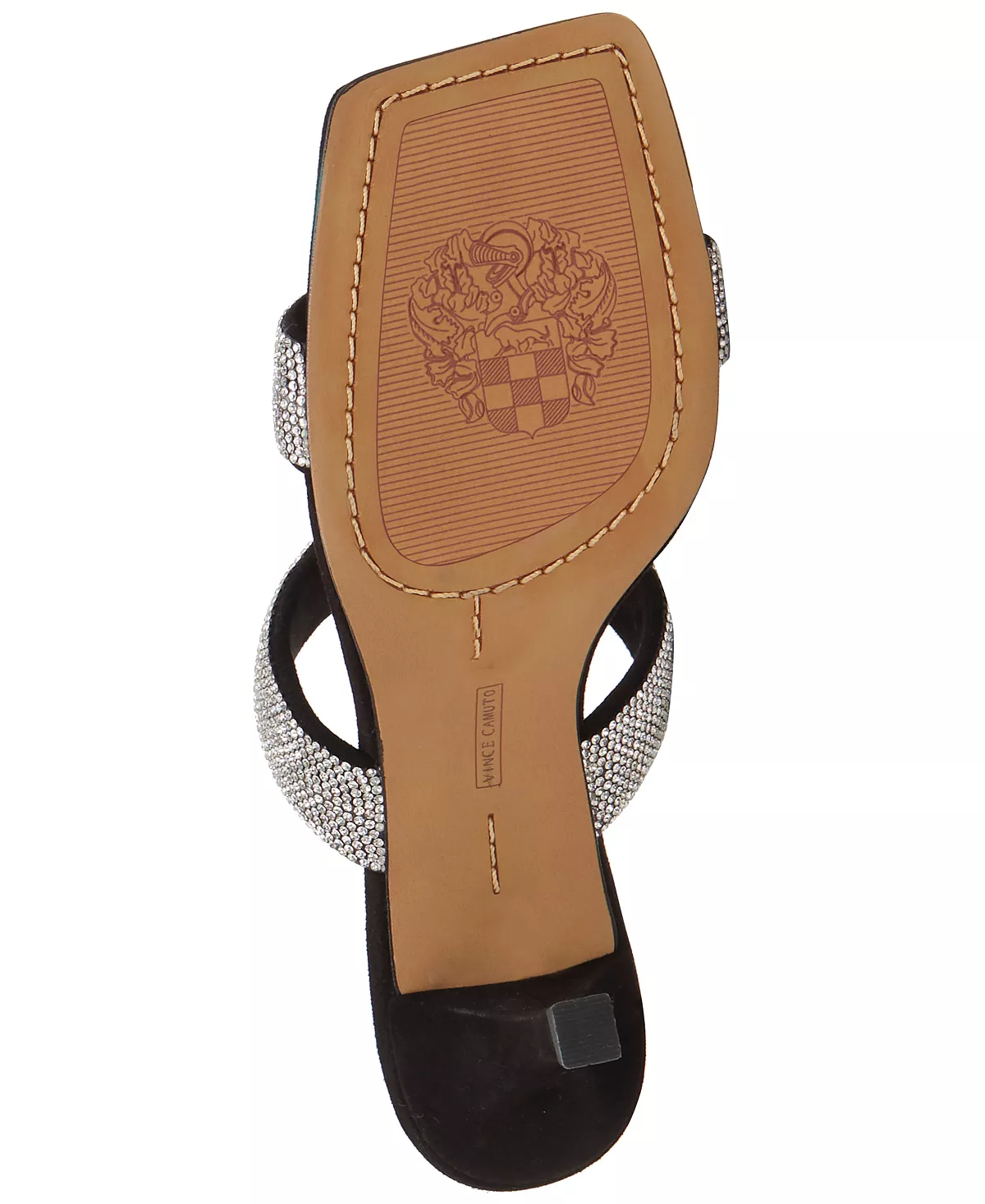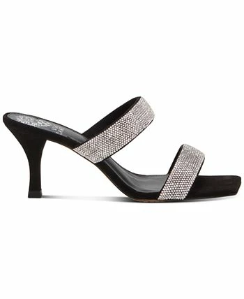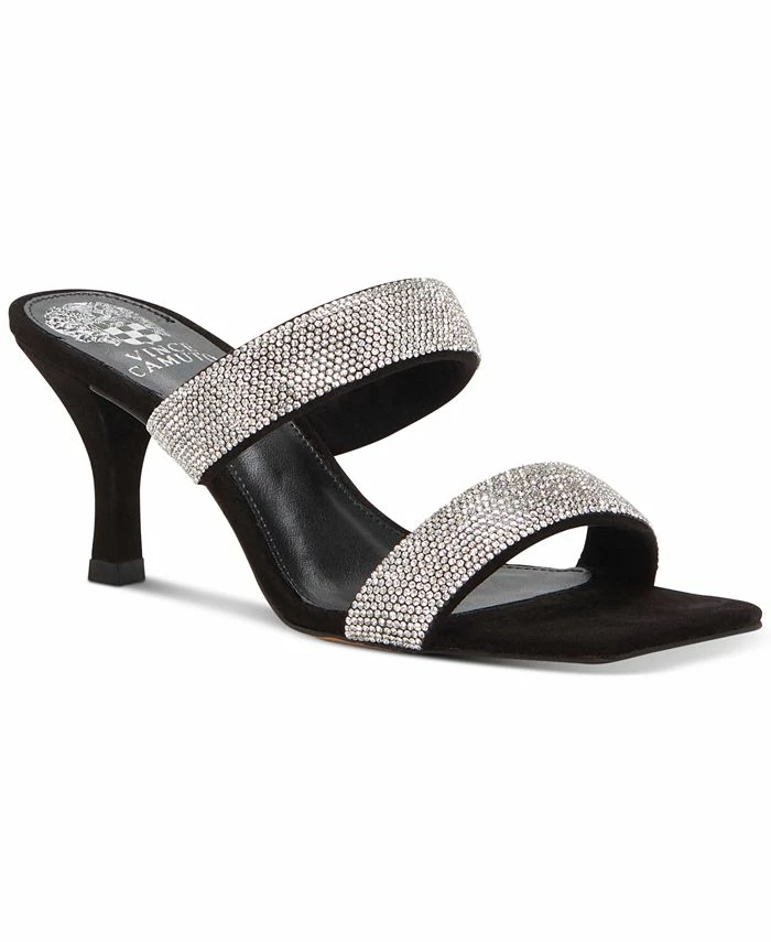 A duo of rhinestone straps sets atop a sleek stiletto heel adding sparkling lift to dressy looks in the Aslee sandals from Vince Camuto.