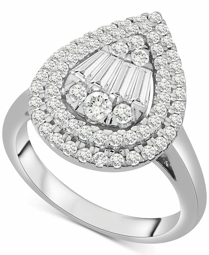 Live the glam life with this dazzling round and baguette diamond teardrop cluster ring, from Wrapped in Love™.